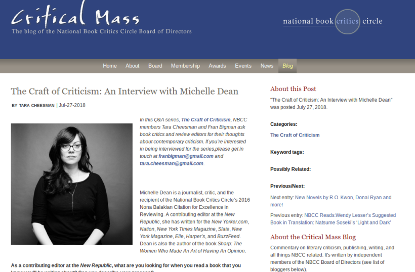 Personally, I think time would be better spent looking towards the future. And with that in mind Fran Bigman and I have started a series on the National Book Critics Circle website called The Craft of Criticism. Because I believe that book criticism is a very niche area of interest, one I like to equate to people who buy/collect vinyl records. There is still a demand, still an interest, but perhaps not as large an audience as - say - 20 years ago. And, yes, the internet changed everything. As did streaming. But I don’t believe that the internet was an extinction level event for readers and reviewers. And if I am correct about that, then the question we need to be asking (and the more exciting topic of conversation) is how will the form adapt and evolve going forward?